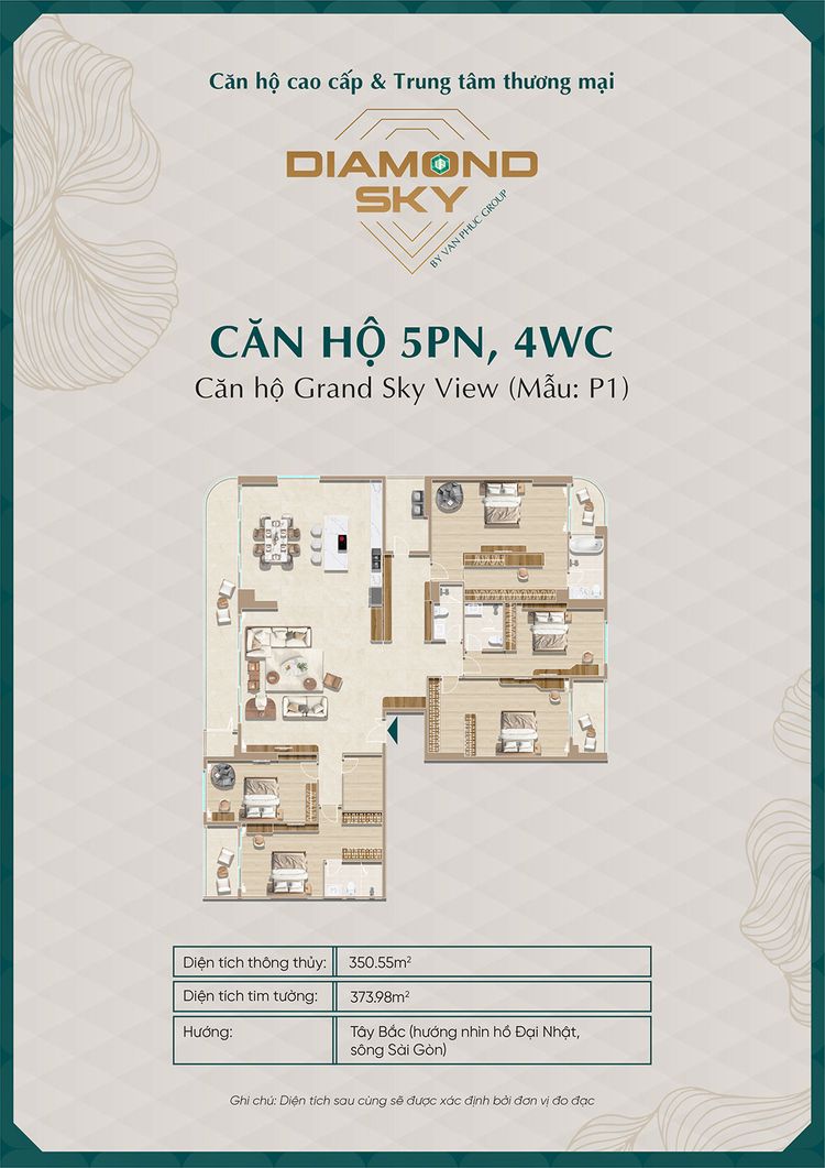 Căn hộ 5 phòng ngủ tại Diamond Sky là dòng sản phẩm giới hạn, sở hữu diện tích lớn và thiết kế đẳng cấp, dành riêng cho khách hàng thượng lưu.